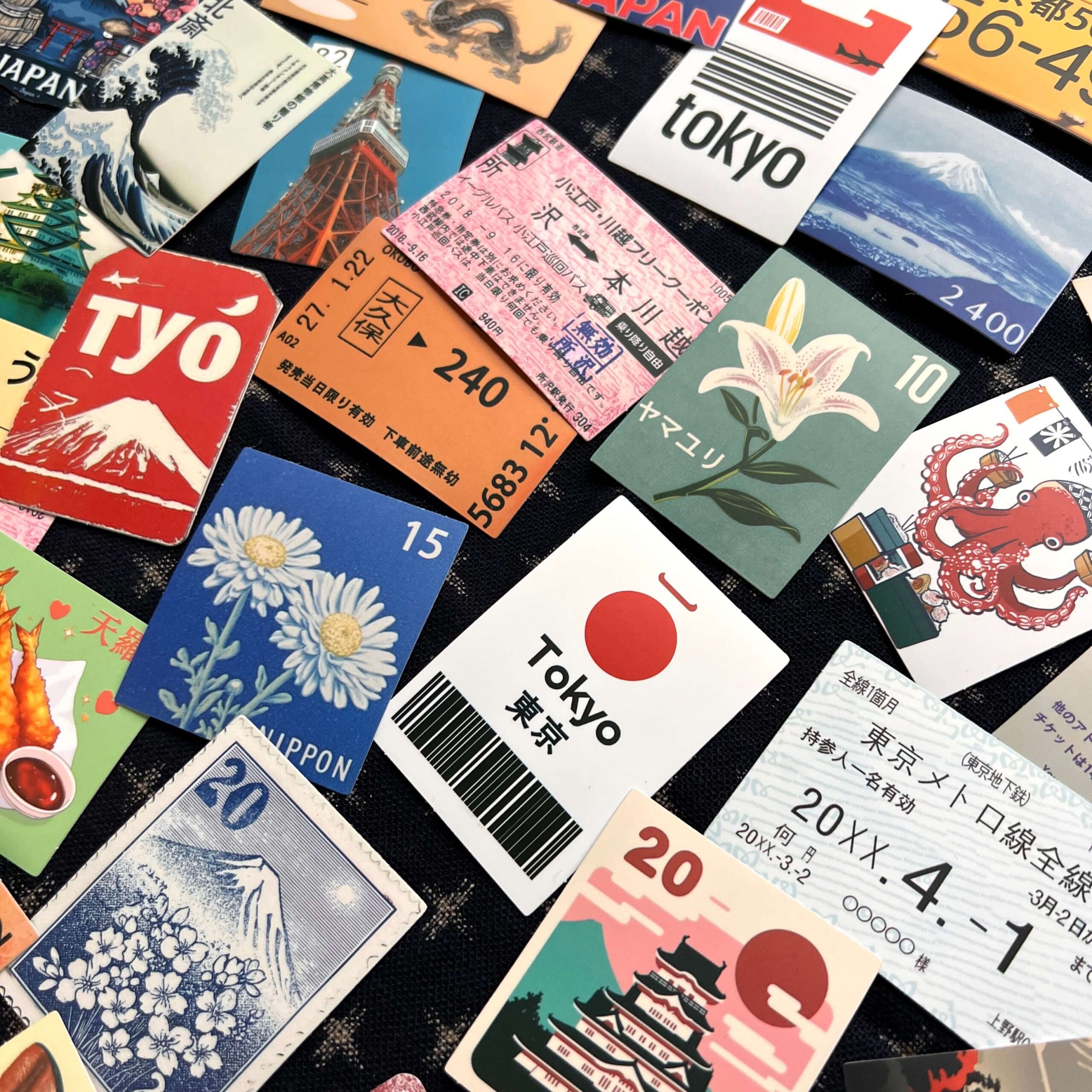 Ensemble de 50 stickers sur le thème de Tokyo (tous différents).